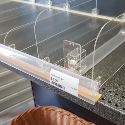Curved adhesive label holders have a slight upward curve. This design makes tags more visible to customers, especially on lower shelves. You do not have to bend down to read the information. Curved holders are popular in supermarkets for bottom shelves or deep display units. They also add a subtle visual appeal to shelves while keeping tags secure.