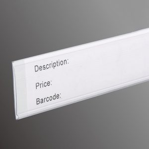 • A self adhesive label holder is a plastic tool designed to attach to shelf edges with a sticky backing. It does not need glue, nails, or clips to stay in place. The adhesive on the back is strong enough to hold the holder firmly on most shelf surfaces. These holders are usually made of durable PVC material. They can hold price tags, product information cards, barcodes, or promotional notes securely.