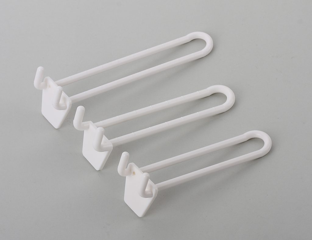 We use heavy duty ABS plastic materials to make all of our slatwall hooks. ABS is a very strong type of plastic that does not break easily. It can hold a good amount of weight without bending or snapping. These plastic slatwall hooks are also safe because they have smooth edges. Unlike metal hooks, they do not have sharp points that can cut your skin or damage your product packaging. Choosing heavy duty slatwall hooks made of ABS ensures your display lasts for a very long time in a busy shop.