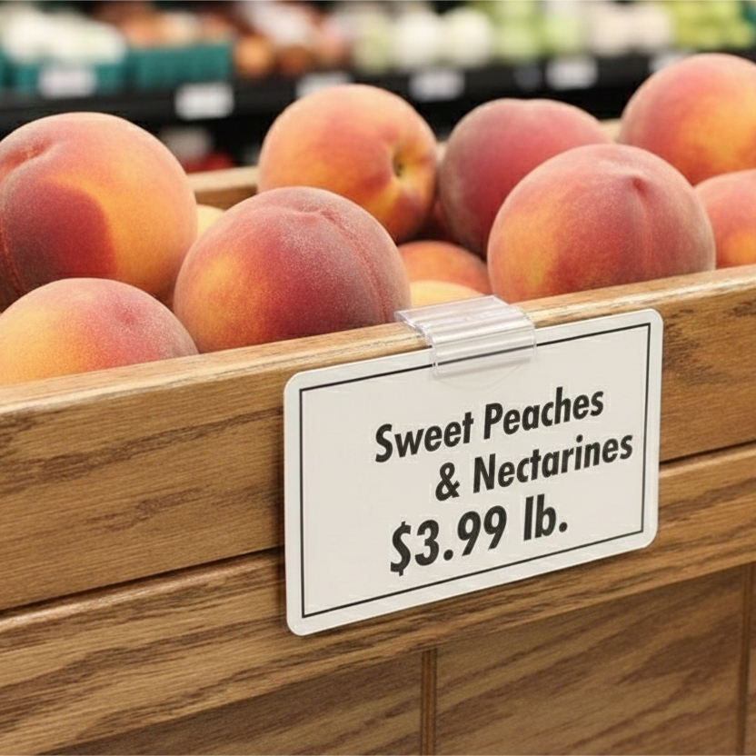Unlike adhesive which can fail in low temperatures, the mechanical grip of our sign holders remains reliable in coolers and freezers. They are made from cold-resistant materials that won’t become brittle, ensuring your product information stays visible and secure in challenging environments.