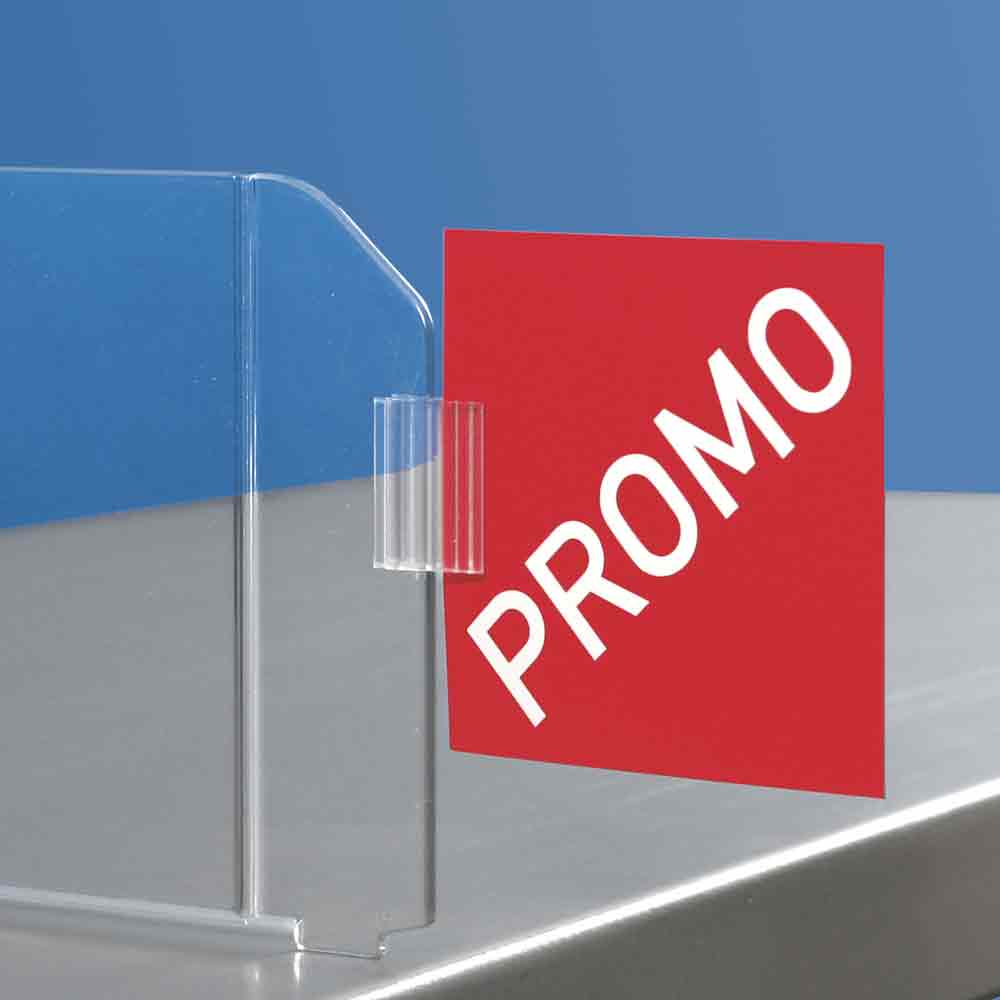 Plastic stand-up sign holders are a cheap choice for many stores. They are easy to swap out and fit many needs.